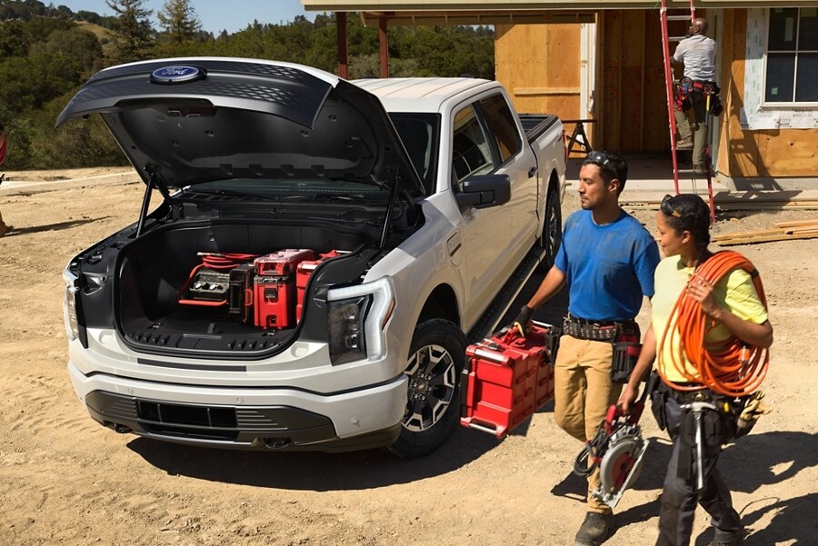 Be the talk of the tailgate. Pack along some conveniences camping. Plug-in a few power tools. With this much power your F-150® Lightning™ is up to the task.